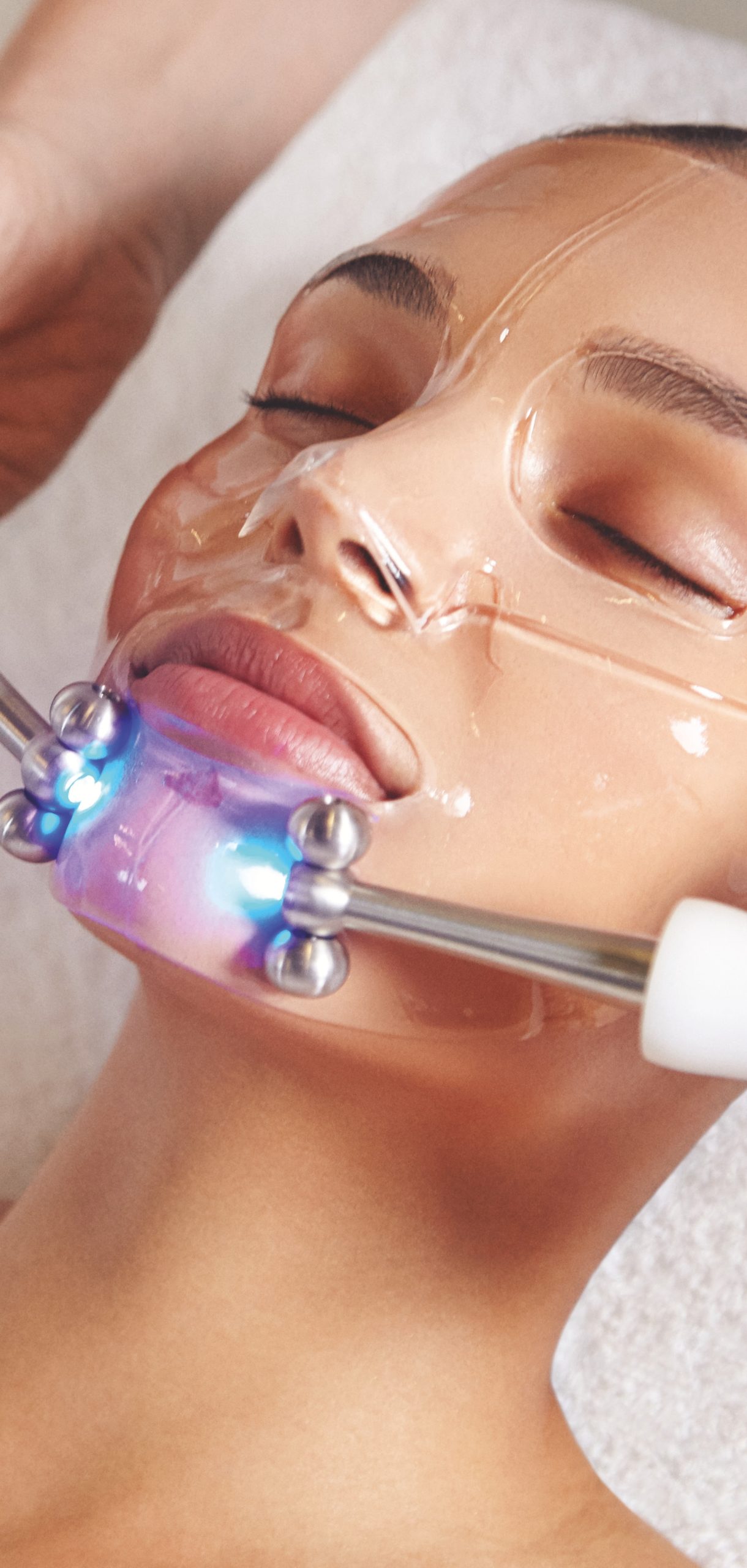 This treatment is designed to deeply nourish, hydrate and firm the skin. Facial rollers emitting simultaneous microcurrent impulses and LED light therapy are gently massaged over the Hydro Mask. The rejuvenating energy transmitted through the rollers provides immediate and intensive hydration and helps to restore skin firmness, soften fine lines and rejuvenate your skin. Ideal for the treatment of dehydrated or sun damaged skin